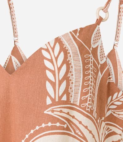 Vestido Curto com Linho Estampado Tropical e Argola na Alcinha