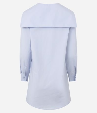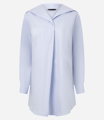 Vestido curto feminino confeccionado em algodão certificado Bci. Possui manga longa, modelagem tipo camisão, gola marinheiro, punhos com botões e barra arredondada.