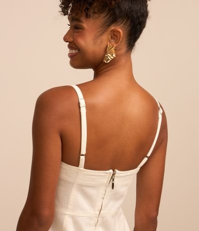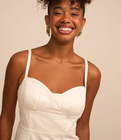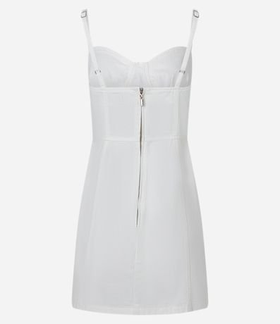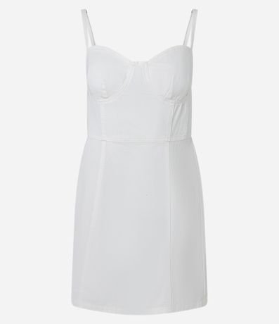 Ref: Vestido curto de alcinhas finas reguláveis confeccionado em sarja com decote coração, recortes no busto e fechamento traseiro por zíper.