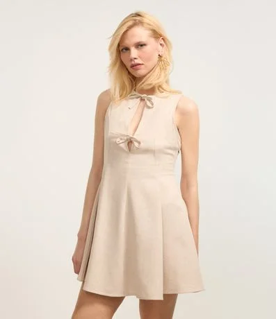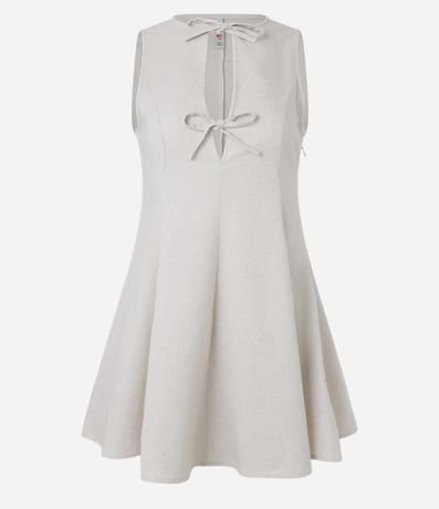 Vestido Curto em Alfaiataria Plissado com Amarrações no Decote