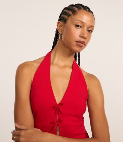 Vestido Curto em Bengaline com Lacinhos Frontais e Costas Abertas