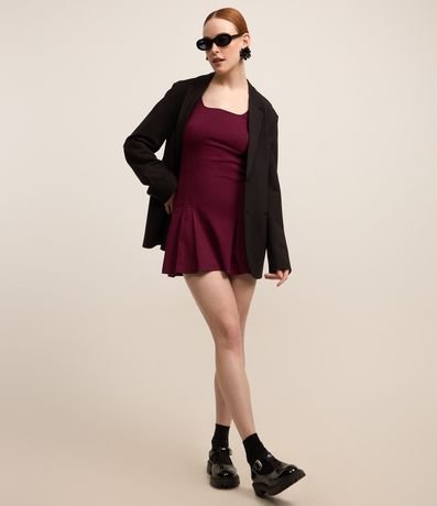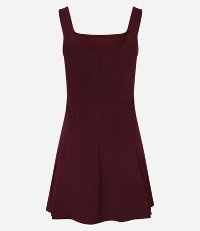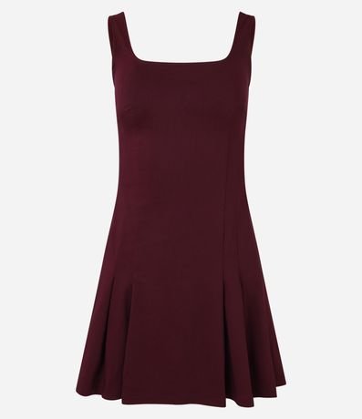 Ref: Vestido curto em bengaline, com decote quadrado, alças médias e pregas laterais.