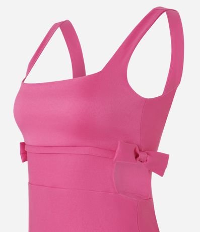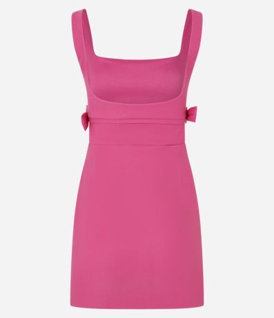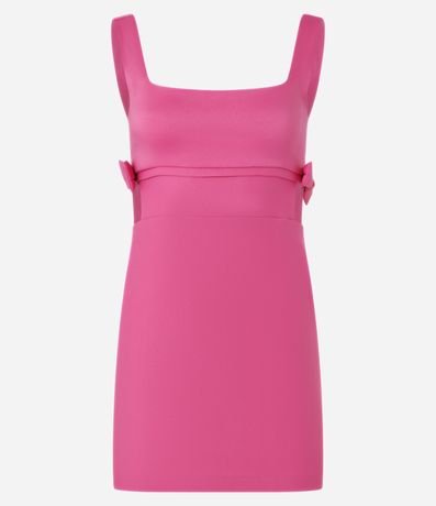 Vestido curto e justinho com alça larga, confeccionado em bengaline produzido em boas práticas ambientais e recortes vazados com lacinhos nas laterais.