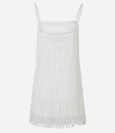 Vestido curto com franjas em camadas, alcinhas finas reguláveis e confeccionado em chiffon.