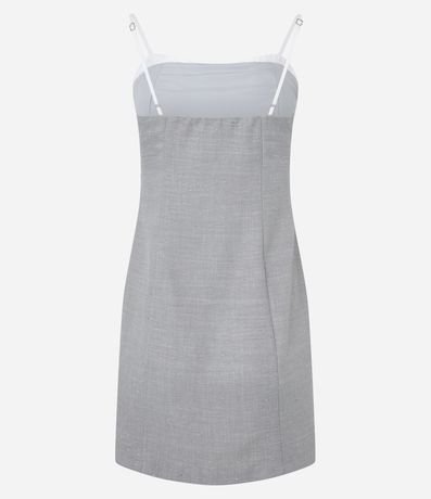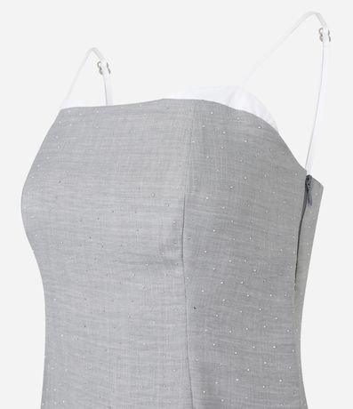 Ref: Vestido de comprimento curto, sem mangas, confeccionado em crepe. A roupa tem alcinhas finas reguláveis e decote reto, além de brilhos aplicados por pedrarias de strass. Produto fabricado através de boas práticas ambientais.