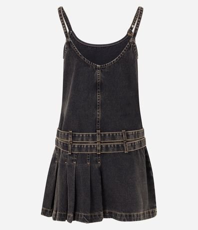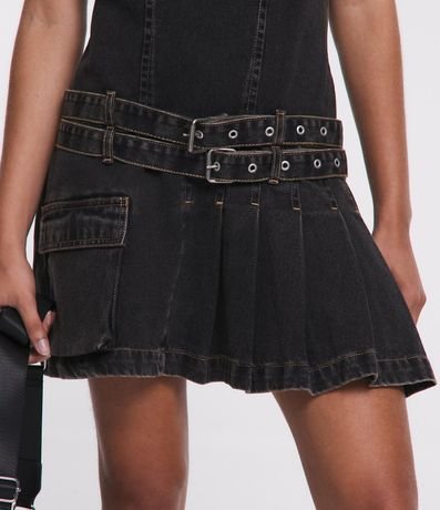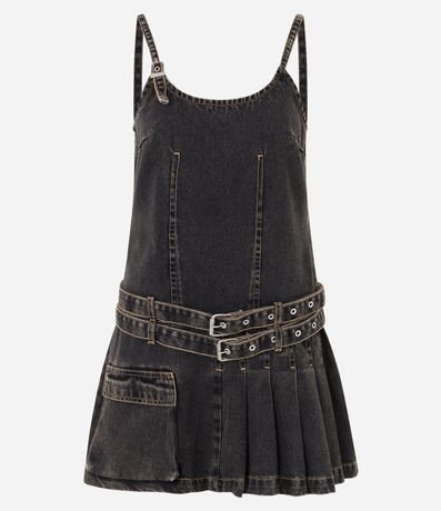 Vestido Curto em Jeans com Pregas e Cinto