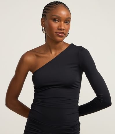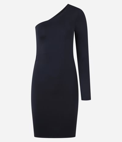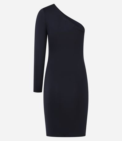 Ref: Vestido feminino curto, confeccionado em poliamida, de modelo ombro único, com manga longa e detalhe lateral de franzido.
