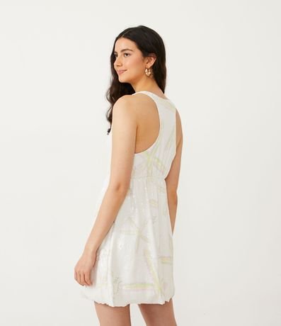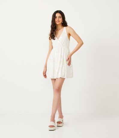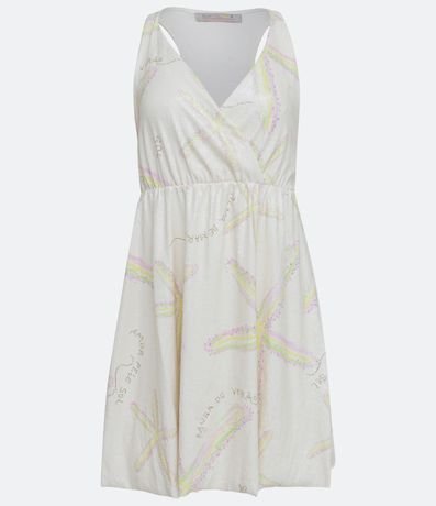 Ref: Vestido curto com decote V transpassado e estampa de estrelas do mar. Confeccionado em malha paetê, o modelo esbanja delicadeza e brilho. Aposte com sadália flatform e tenha um look estiloso e muito confortável para dias de calor.
