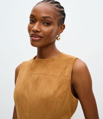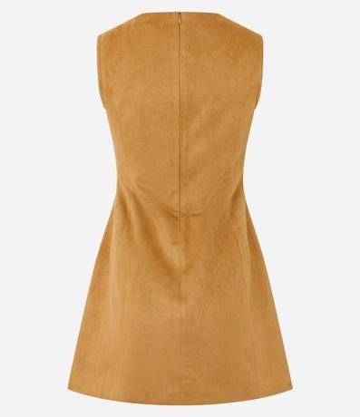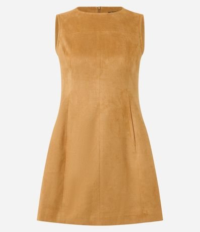 Vestido confeccionado em malha com acabamento em suede, apresentando toque macio e visual aveludado. O modelo sem mangas possui gola redonda e modelagem acinturada, que valoriza a silhueta com caimento estruturado. O comprimento curto, acima do joelho, traz leveza e versatilidade à peça, enquanto os bolsos laterais funcionais adicionam praticidade ao uso diário. O acabamento liso e o design clean tornam o vestido ideal para composições casuais contemporâneas e produções urbanas com conforto.