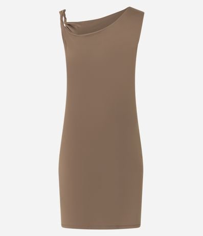 Vestido curto confeccionado em malha de microfibra, que modela o corpo e é super confortável. A peça tem alças largas e um ombro torcido.
