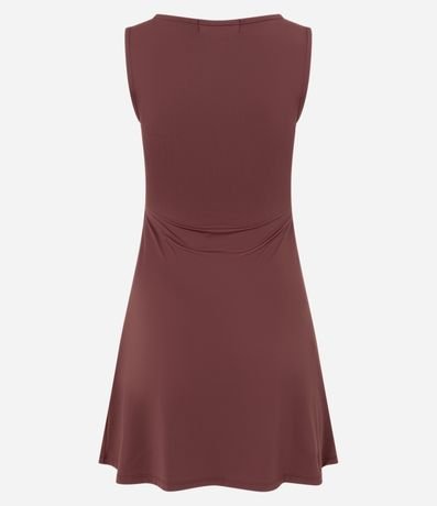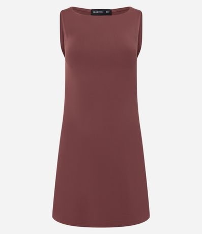 Vestido feminino confeccionado em poliamida no modelo curto, sem manga com decote canoa.