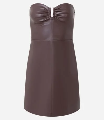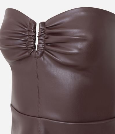 Vestido Curto em PU com Decote Franzido no Busto