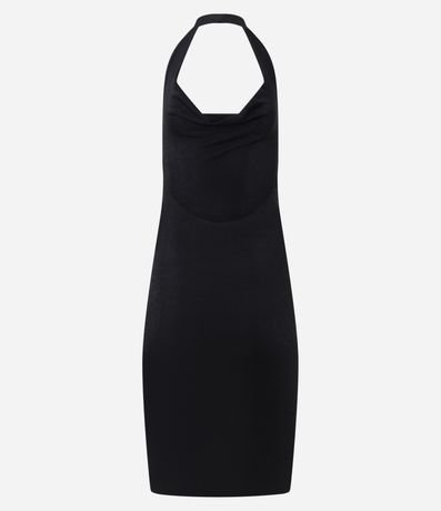 Vestido curto confeccionado em malha ribana com brilho sutil e caimento ajustado. Modelo frente única com decote delicado, costas livres e detalhe de franzido lateral que valoriza a silhueta.