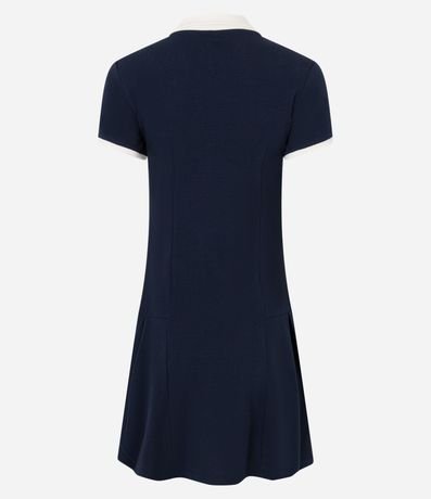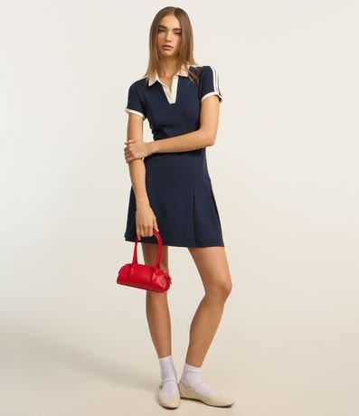 Ref: Vestido curto, estilo skater com golinha polo, decote v, viés contrastante e confeccionado em ribana com algodão bci mais sustentável.