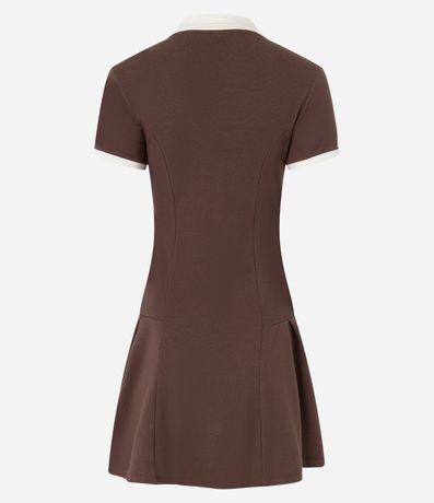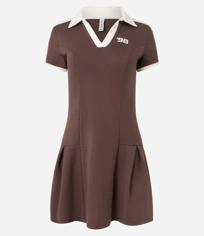 Ref: Vestido curto com golinha polo contrastante, manga curta, confeccionado em ribana com bordado em lettering 98 no peito.