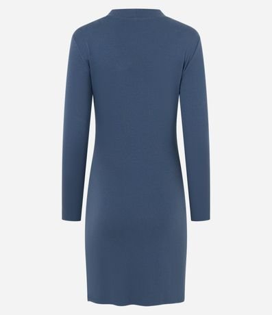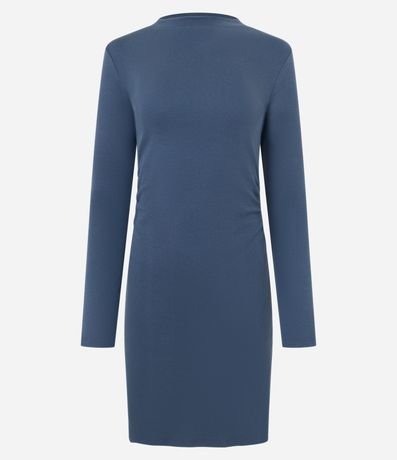 Vestido feminino confeccionado em Suedine de algodão mais sustentável com boas práticas ambientais, peça no modelo curto com manga longa e gola alta ajustada.