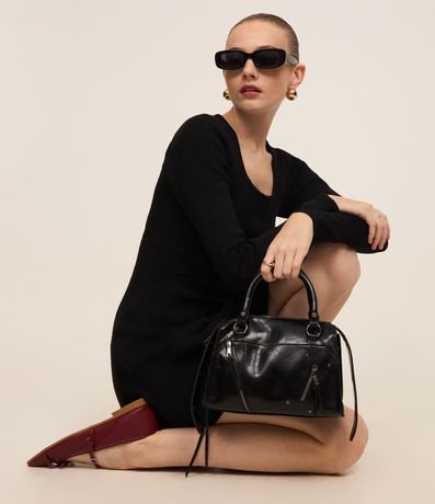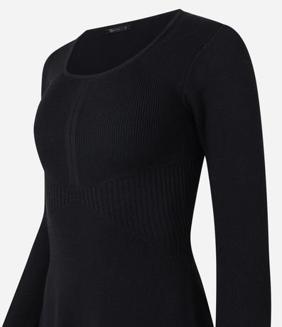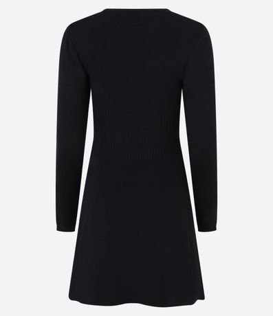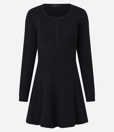 Ref: Vestido curto, confeccionado em tricô, com decote quadrado e mangas longas. Vestidinho tem recorte vertical no busto e cintura com textura diferenciada.