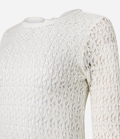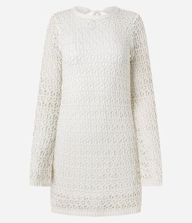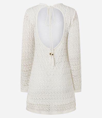 Ref: Vestido curto com manga longa, confeccionado em tricô texturizadado, ponto aberto nas mangas e com costas abertas.