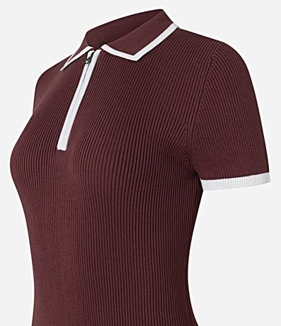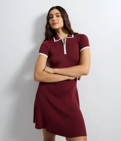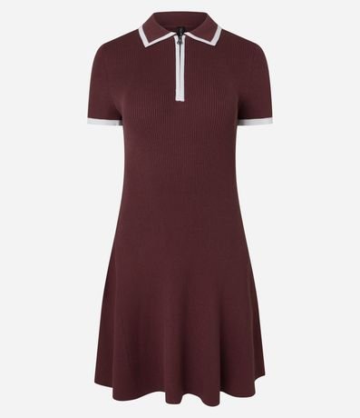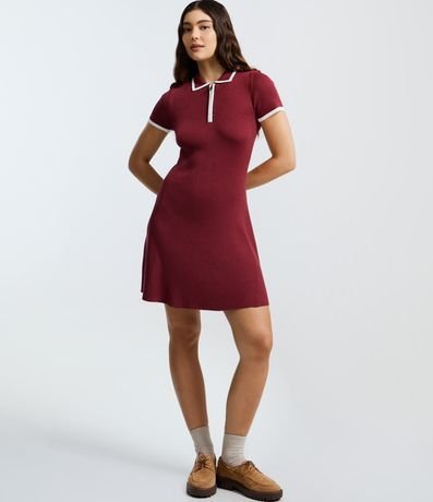 Ref: Vestido curto feminino em malha tricô com viscose certificada. Possui gola polo estruturada, zíper frontal funcional, viés contrastante, manga curta e modelagem levemente evasê, garantindo ajuste confortável e acabamento uniforme para uso cotidiano.