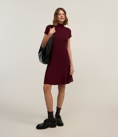 Ref: Vestido curto com golinha alta, confeccionado em tricô leve e com manga curta.