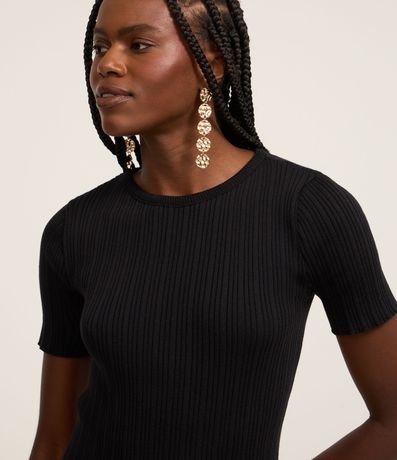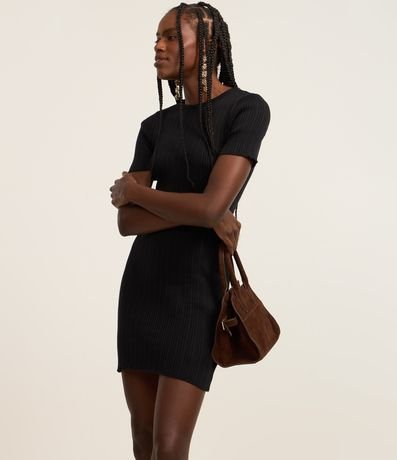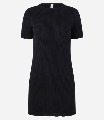 Ref: Vestido curto confeccionado em tricô leve, manga curta e sem estampa.
