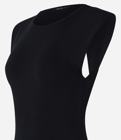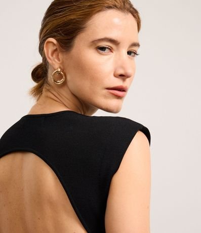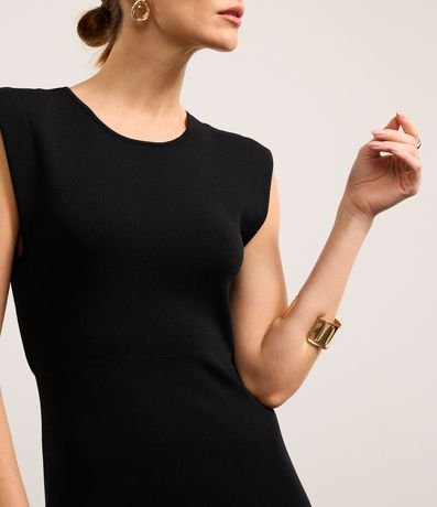 Ref: Vestido de comprimento curto e sem mangas, confeccionado em tricô com caimento leve, com gola redonda e obreiras. A peça tem abertura vazada nas costas. Este produto possui viscose certificada em sua composição, sendo ambientalmente mais responsável.