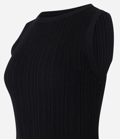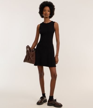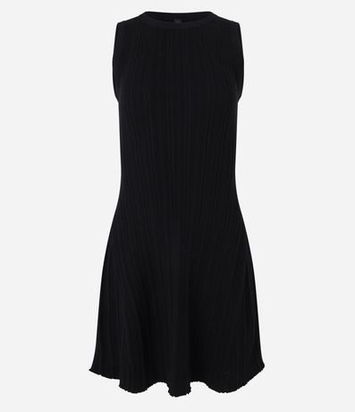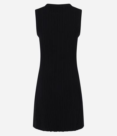 Vestido curto, sem manga confeccionado em tricô leve com viscose certificada, texturizado e sem estampa.