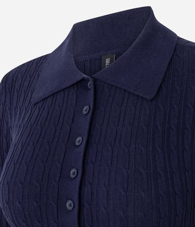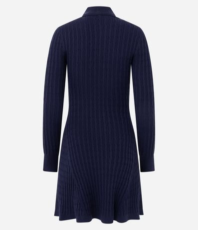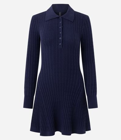 Ref: Vestido curto em tricô com textura, modelagem evasê e gola polo. Possui mangas longas e caimento confortável, ideal para looks elegantes e atuais. Versátil para o dia a dia, com toque macio e visual atemporal, confeccionado em algodão de certificado BCI.