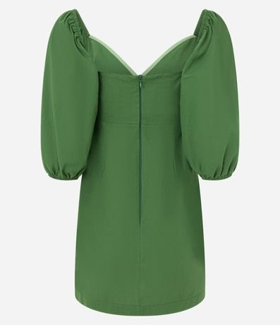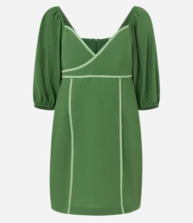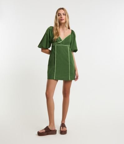 Ref: Vestido curto com decote transpassado, coração, fechamento por zíper nas costas, viés contrastante e confeccionado em tricoline.