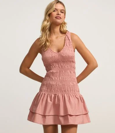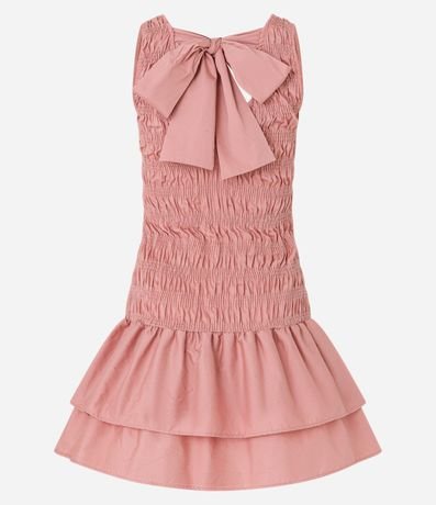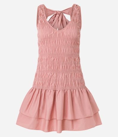 Ref: Vestido curto confeccionado em tricoline com algodão bci, alça larga e laço nas costas. Possui corpo em lastex e saia dupla.