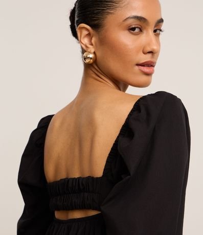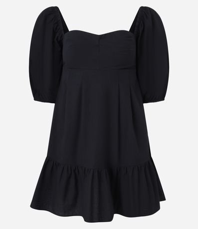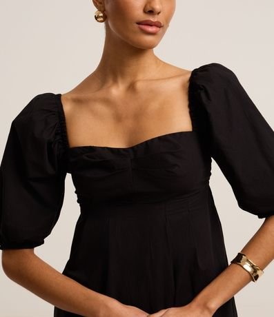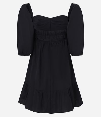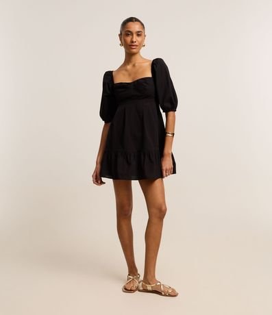 Vestido Curto em Tricoline com Manga 3/4 Bufante