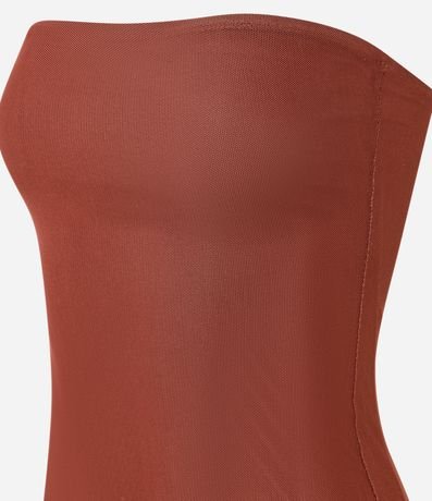 Vestido feminino curto confeccionado em malha com sobreposição de tule, trazendo leveza e movimento. Possui modelagem ajustada, sem mangas e decote reto, ideal para compor looks sofisticados. Destaque para o babado assimétrico na barra, que adiciona charme e fluidez à peça.