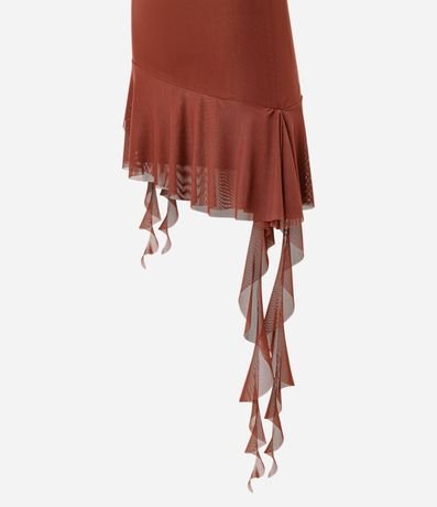 Vestido Curto em Tule com Babado Assimétrico na Barra