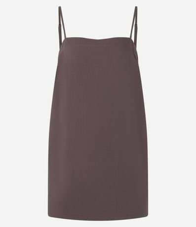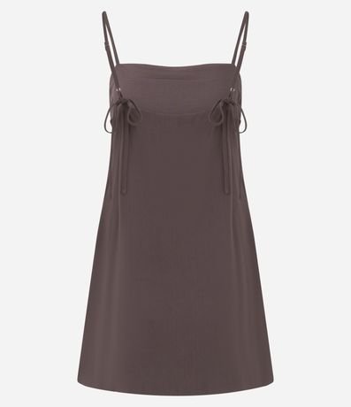 Ref: Vestido curto com alcinhas finas e amarração nas costas, confeccionado em viscose mais sustentável, soltinho e sem estampa.