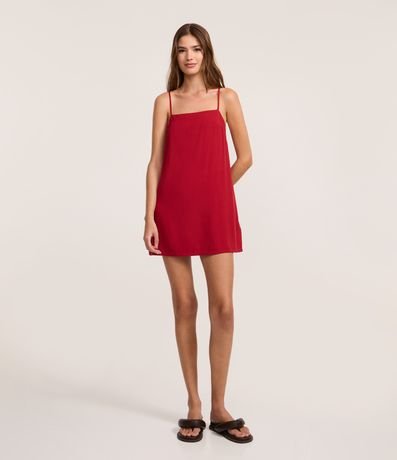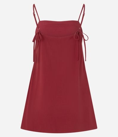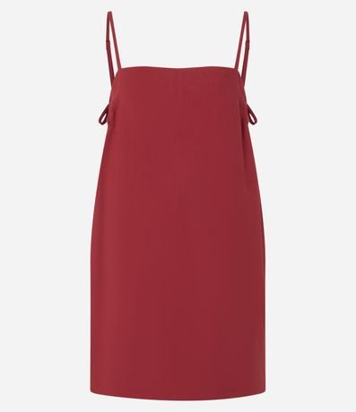 Vestido curto com alcinhas finas e amarração nas costas, confeccionado em viscose mais sustentável, soltinho e sem estampa.