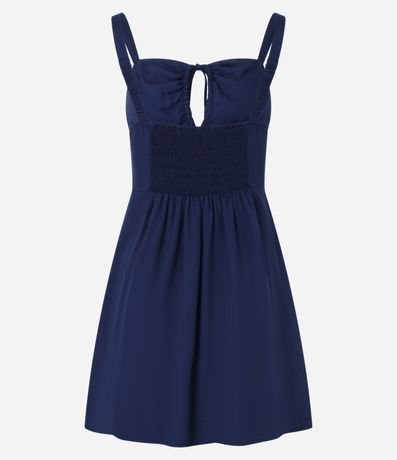 Ref: Vestido curto de alcinhas, confeccionado em viscose mais sustentável, recorte vazado com franzido no busto, lastex nas costas e produzido através de boas práticas ambientais.
