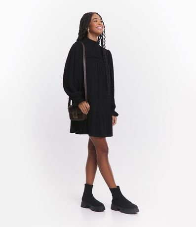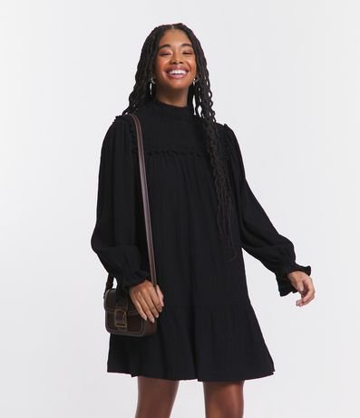 Ref: Vestido curto, manga longa, confeccionado em viscose e com lastex.