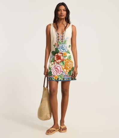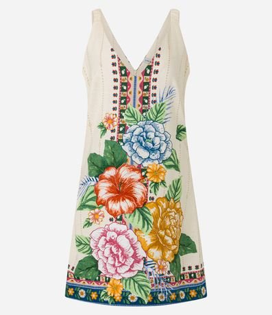 Vestido Curto em Viscose com Linho e Estampa Floral