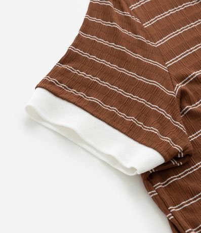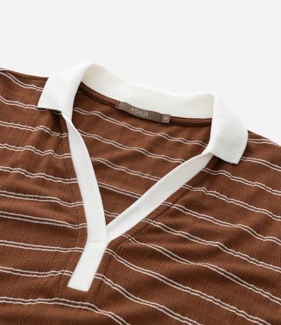 Vestido curto em viscose com padronagem listrada e gola polo contrastante, trazendo um visual casual moderno. A modelagem comfort garante liberdade de movimento e ótimo caimento. Peça prática e versátil para o dia a dia, unindo estilo e leveza em todas as ocasiões.
