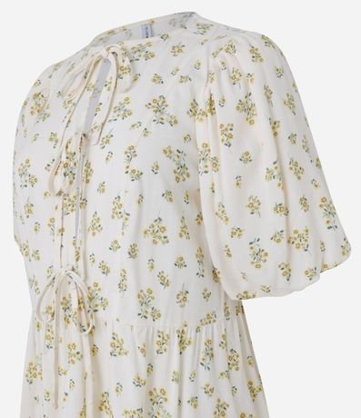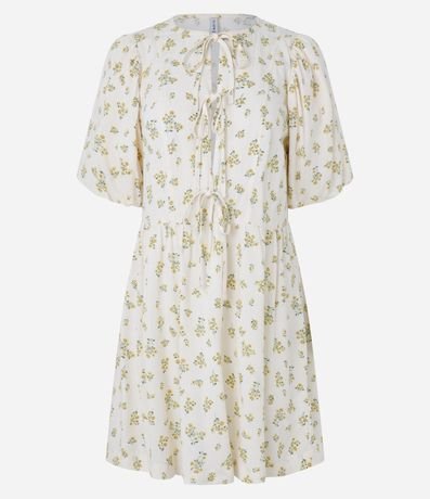 Ref: Vestido curto feminino, confeccionado em viscose, com lacinho na parte frontal do busto, mangas curtas bufantes e recorte na cintura. A peça conta também com estampa floral, que traz um toque romântico a peça.
