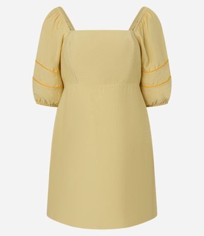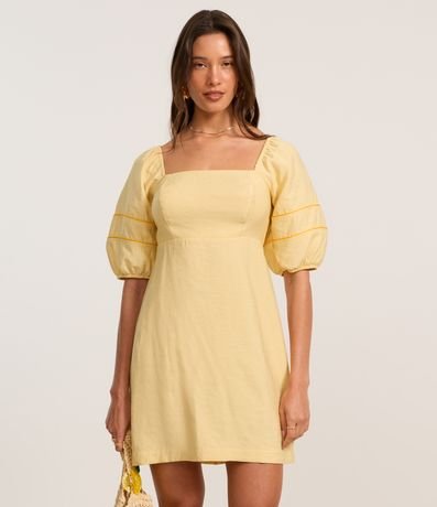 Ref: Vestido curto com manga curta, confeccionado em viscose mais sustentável e com recorte na cintura.
