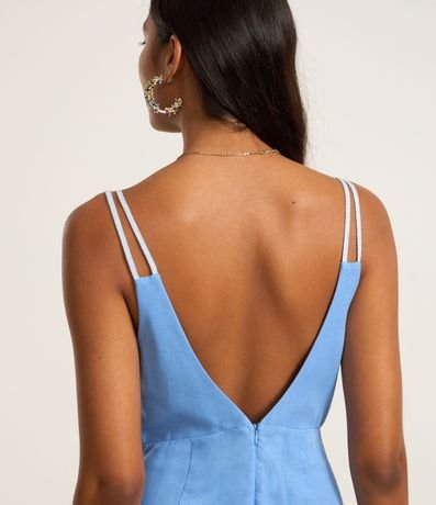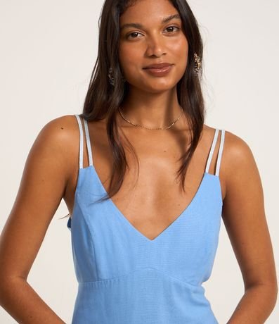 Ref: Vestido curto, confeccionado em viescose com linho, alcinhas de corda e fechamento por zíper nas costas.