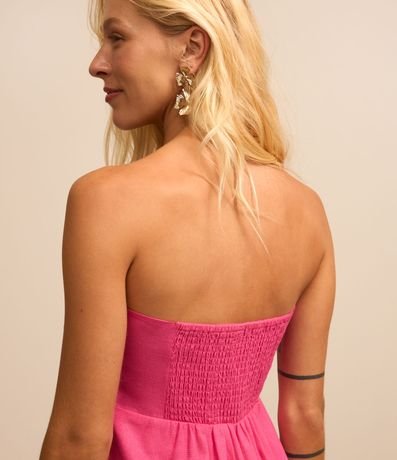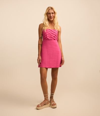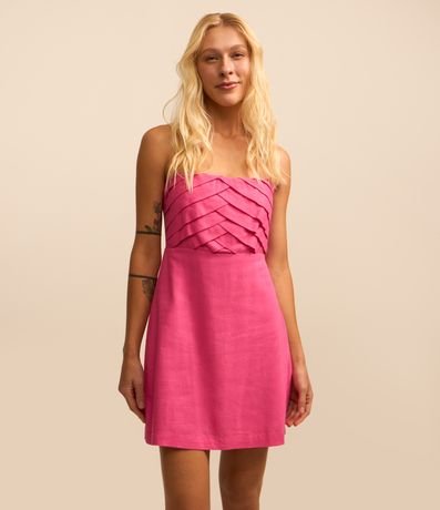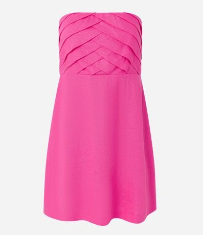 Ref: Vestido curto com decote tomara que caia, fechamento por zíper invisível na lateral, lastex nas costas e pregas no busto.