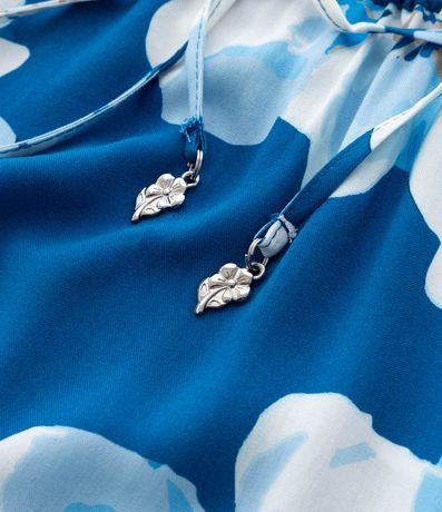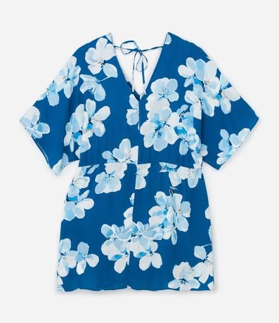 Vestido curto confeccionado em tecido fresco composto por viscose certificada - e estampado de flores. A peça tem manga morcego, gola V e amarração na cintura com regulagem e ponteiras.