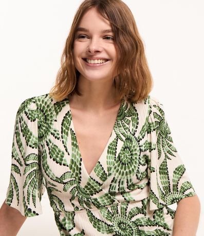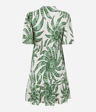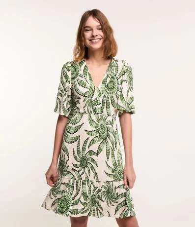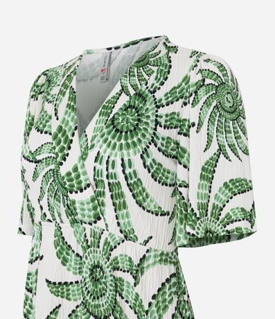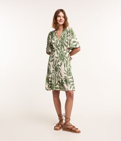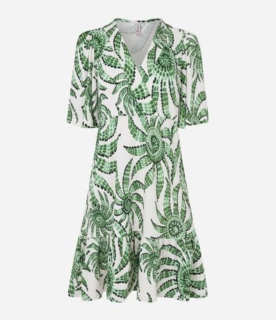 Ref: Vestido curto com mangas curtas, decote V transpassado, confeccionado em viscose e com estampa floral.