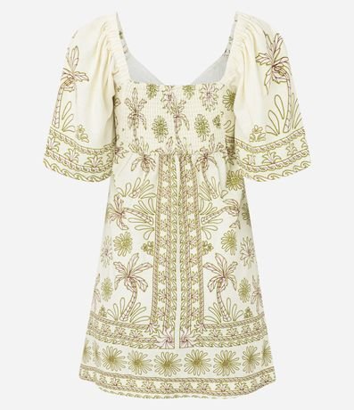 Ref: Vestido feminino confeccionado em viscolinho mais sustentável, no modelo evasê. Possui decote v, com detalhe vazado, manga curta e estampa floral.