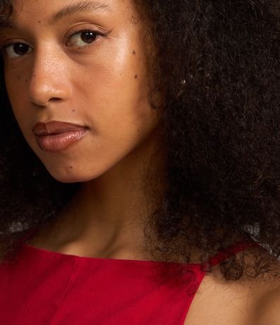 Ref: Vestido godê, curto, sem manga confeccionado em bengaline com viscose certificada mais sustentável e pregas na saia.