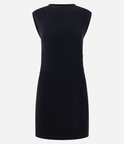 Ref: Vestido curto confeccionado em malha de viscose certificada e sem estampa. A peça não tem mangas e tem franzidos laterais.