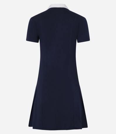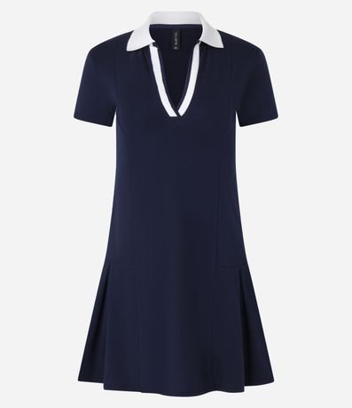 Ref: Vestido feminino confeccionado em ribana mais sustentável com boas práticas ambientais. Peça no modelo curto sportcore com gola polo contrastante e manga curta.