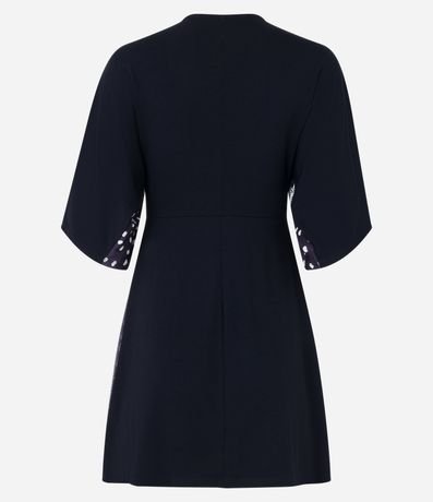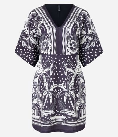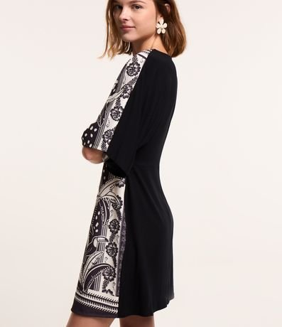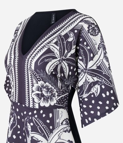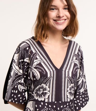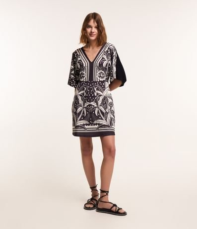 Ref: Vestido curto com decote V, manga curta soltinha, texturizada e com estampa floral na parte da frente.